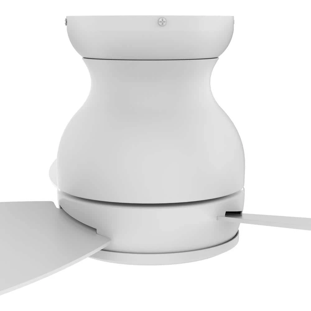 - Fan features a white canopy that covers the connection between the motor hub and the ceiling and conceals all internal hardware for a sleek look