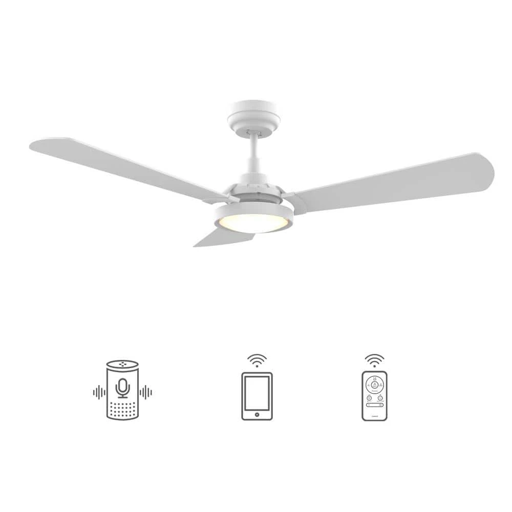 This Veter 56 in. smart ceiling fan keeps your space cool, bright, and stylish. It is a soft modern masterpiece perfect for your large indoor living spaces. This Wi-Fi smart ceiling fan is a simple design with white finish, using high quality plywood blades and has an integrated 4000K daylight LED. The fan features remote control, Wi-Fi apps and Voice Control Technology (compatible with Alexa and Google Home Assistant, but not included) to set fan preferences.