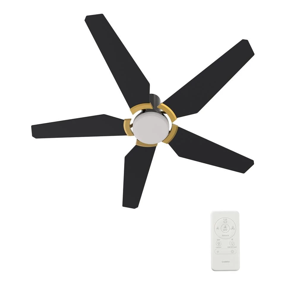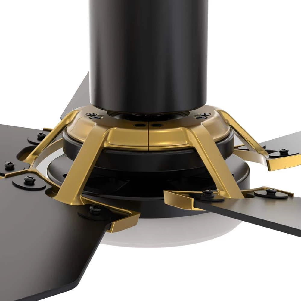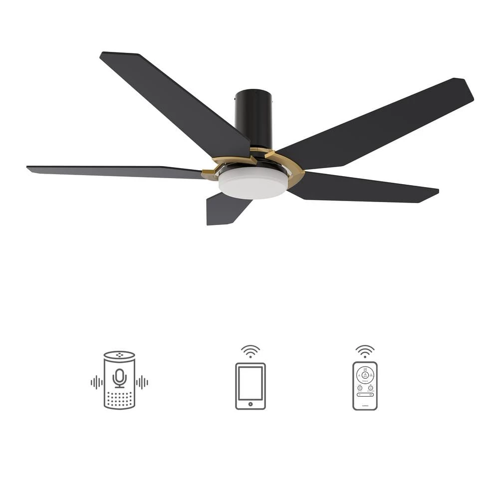 This Voyager 52 in. smart ceiling fan was created to transform your outdoor patio into a beachside resort. Enjoy the cooling and powerful airflow that its long blades deliver during summer afternoons or bask in the warm bright light on winter evenings. The fan features a burnished metal exterior black, complementing blades and elegant gold accents for a modern addition to any home decor.