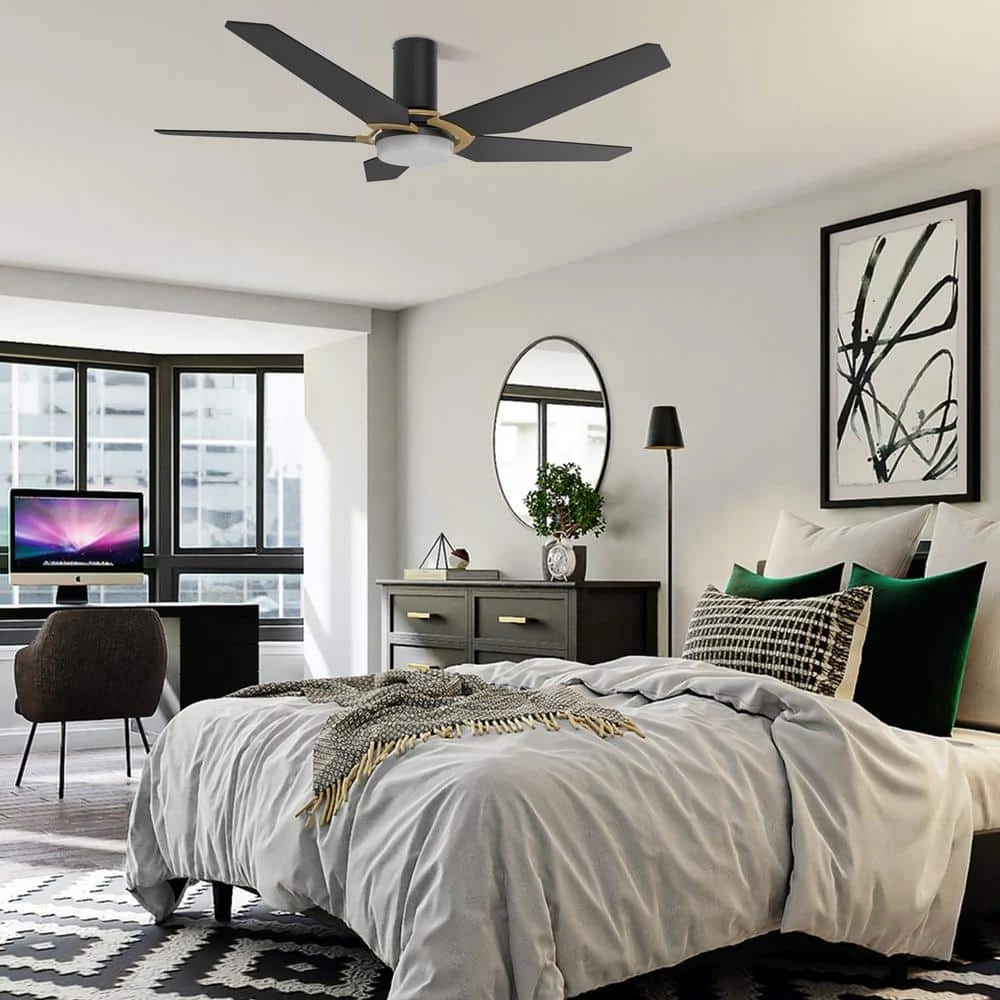 - Fan features a flush mount, making it perfect for reduced spaces and low profiles, only compatible with even ceilings