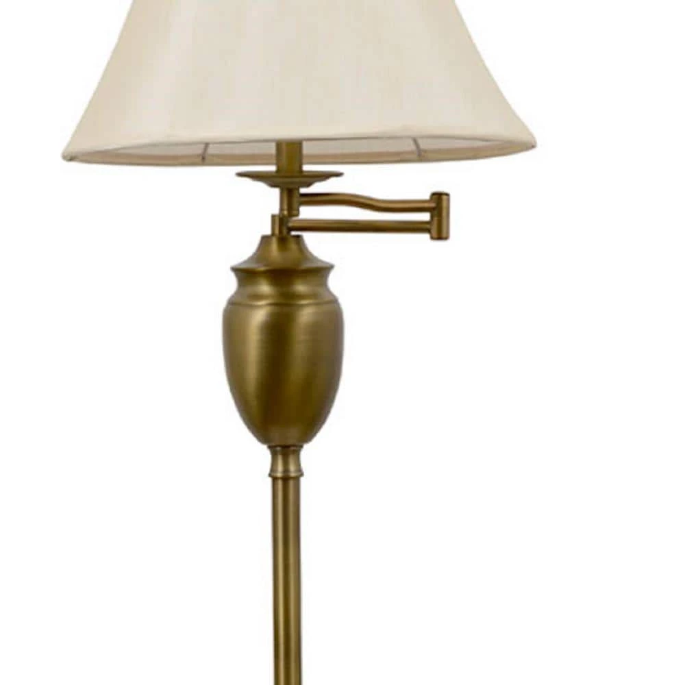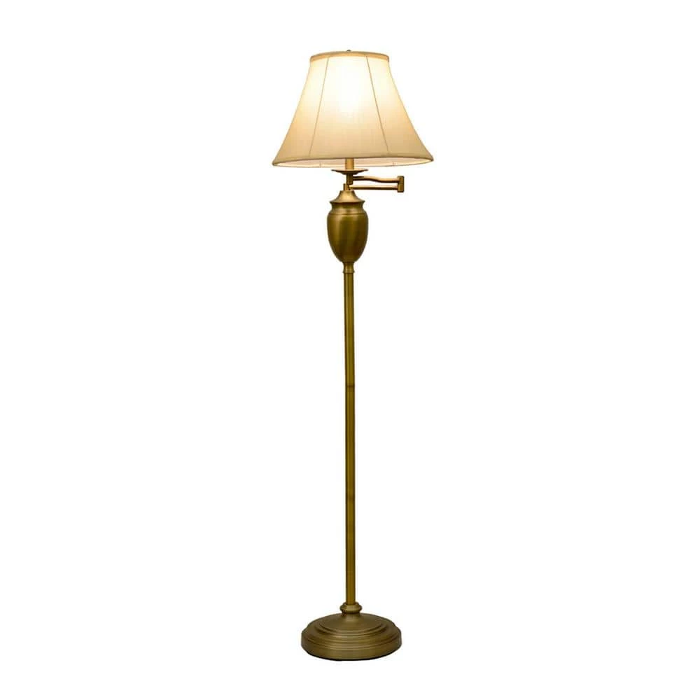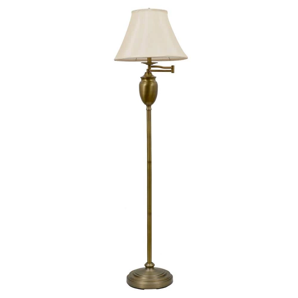 This swing floor lamp is a design essential that will always remain relevant. The transitional steel base is paired with a round faux silk shade. The swing arm allows you to place the light exactly where you need it, creating a designer inspired room. Requires one 100-Watt bulb, not included. 3 way light. Constructed of steel. Measures 15 in. x 15 in. x 59 in.