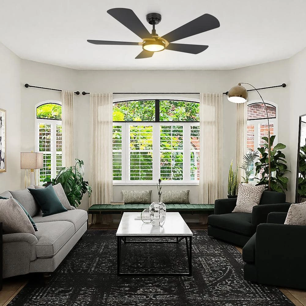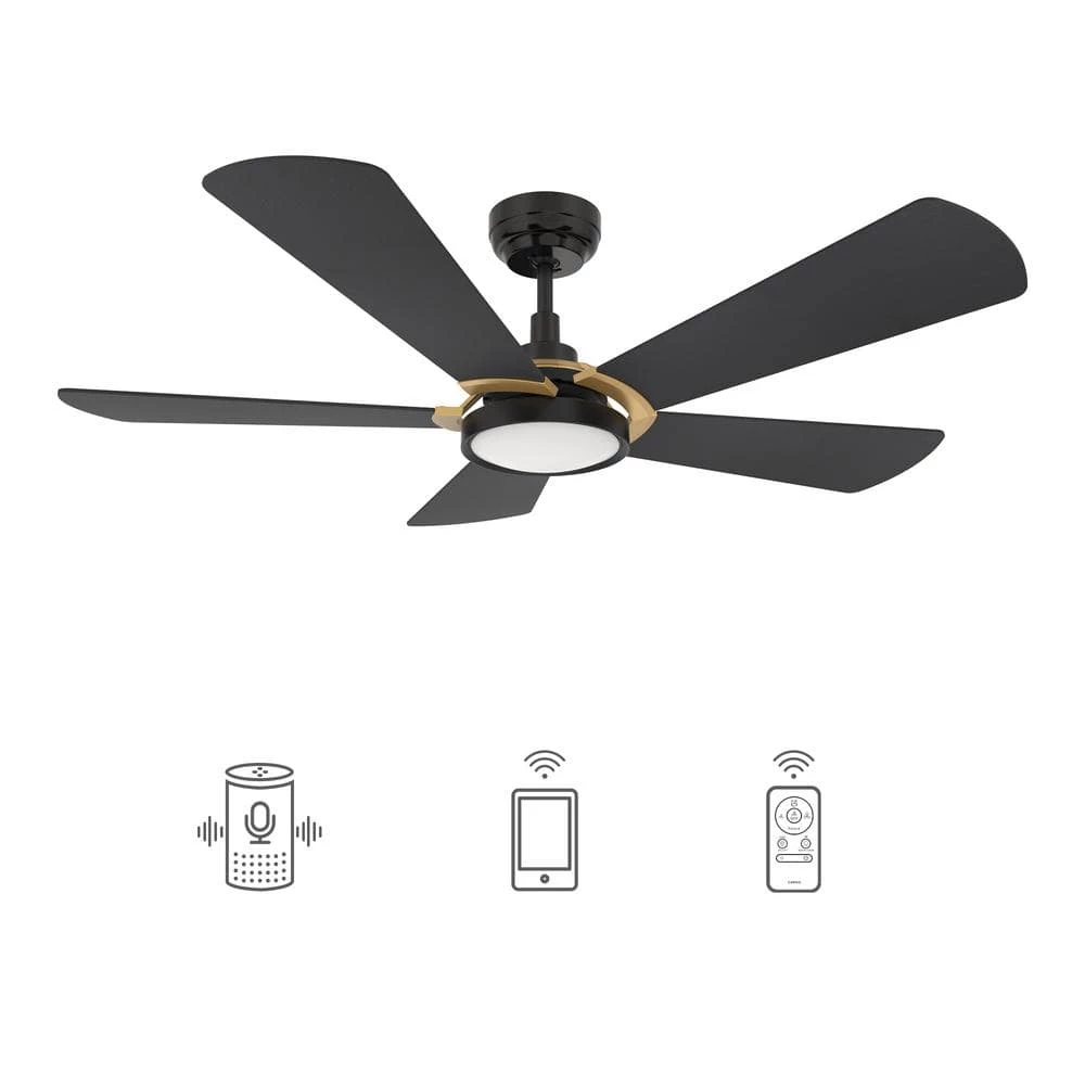 This Wilkes 56 in. smart ceiling fan keeps your space cool, bright and stylish. It is a soft modern masterpiece perfect for your large indoor living spaces. This Wi-Fi smart ceiling fan is a simple design with black and gold finish, using 3 high quality plywood blades and has an integrated 4000K daylight LED. The fan features remote control, Wi-Fi apps and Voice Control Technology (compatible with Alexa and Google Home Assistant, but not included) to set fan preferences.